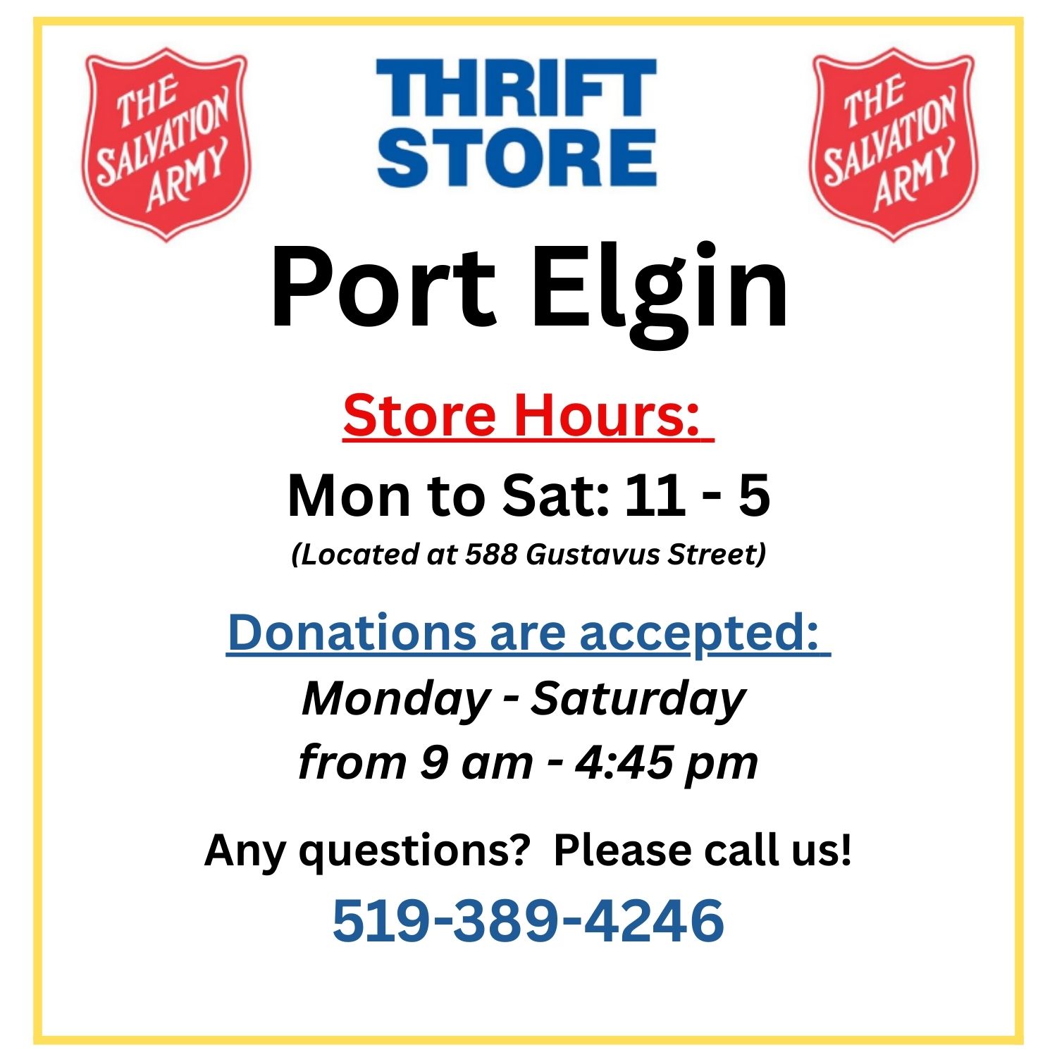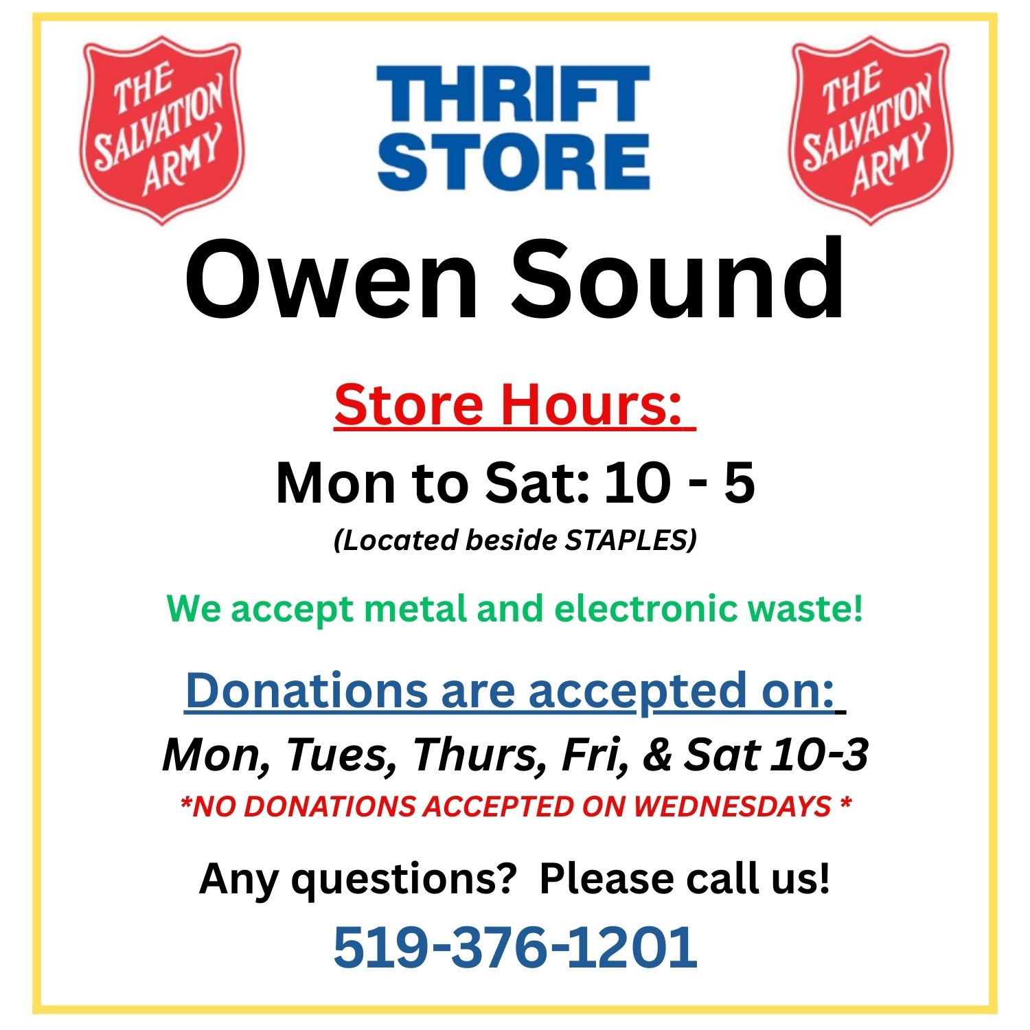 Thank you for your support of our Thrift Stores through your kind donations!